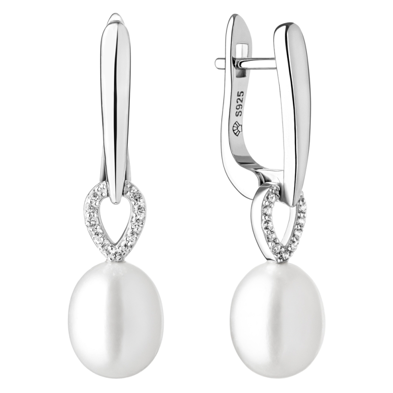 Stříbrné náušnice s levandulovou perlou Amber, stříbro 925/1000, Levandulová