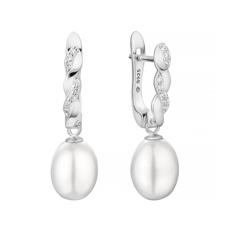 Luxusní stříbrné náušnice s perlou a zirkony zaujmou svým vytříbeným designem, který propojuje jemnost a noblesu v dokonalé rovnováze. Propletený tvar ozdobený třpytivými kamínky působí jako symbol elegance, zatímco bílá perla dodává šperku něžný, ženský charakter. Výsledkem je šperk, který působí lehce, přitom vysoce sofistikovaně.Každý detail těchto náušnic byl navržen s důrazem na estetiku a harmonii. Lesklé stříbro se snoubí s čistým třpytem zirkonů a hladkým povrchem perly, která přirozeně odráží světlo. Celek vyvolává dojem jemné dokonalosti, která rozzáří obličej a podtrhne krásu své nositelky při jakékoli příležitosti.Náušnice jsou ideální volbou pro ženy, které hledají elegantní doplněk pro slavnostní chvíle, ale i decentní šperk pro každodenní nošení. Jejich nadčasová kombinace stříbra, zirkonů a perel nikdy nevyjde z módy a působí luxusně bez zbytečné okázalosti. 💡 Tip: Náušnice nejlépe vyniknou s vlasy vyčesanými nahoru – zvýrazní tak linii krku i obličeje a dodají vzhledu sofistikovaný půvab.