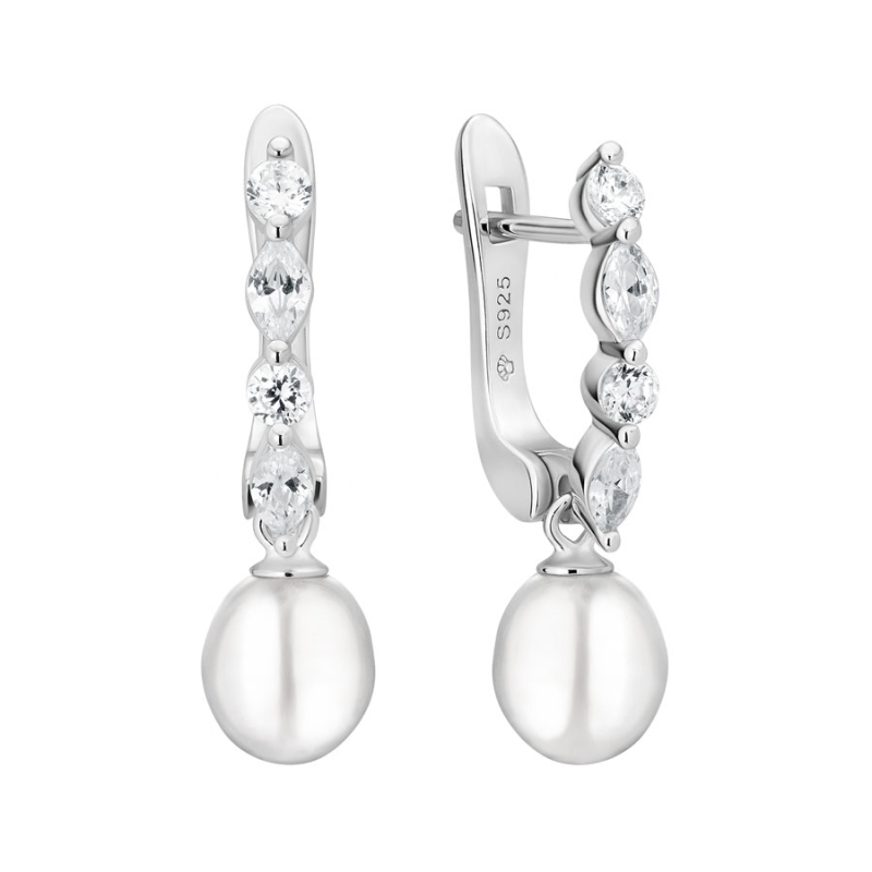 Zářivé stříbrné náušnice s pravými bílými perlami a precizně broušenými zirkony působí jemně, ale s nádechem luxusu. Jejich ladný tvar a jiskřivá kompozice kamenů připomínají kapky ranní rosy, které se snoubí s perlovým leskem. Tento šperk představuje ideální rovnováhu mezi něžností a elegancí – decentní doplněk, který dokáže rozzářit každý pohled.Lesklé stříbro doplněné o linii zirkonů zvýrazňuje přirozenou krásu perly, jejíž hladký povrch odráží světlo s dokonalou jemností. Perla, tradiční symbol ženskosti a harmonie, zde vyniká svou přirozeností a čistotou. Náušnice působí moderně, ale zůstávají nadčasové – navržené tak, aby se staly vaším oblíbeným doplňkem pro výjimečné dny i běžné chvíle.Elegantní silueta, pohodlné nošení a jemný lesk z nich dělají ideální šperk pro ženu, která ocení precizní zpracování a sofistikovaný styl. Jsou ztělesněním decentní krásy, kterou si okolí všimne, aniž by působila okázale. 💡 Tip: Perfektní dárek pro ženu, která má ráda klasiku s moderním nádechem – potěší při výročí, narozeninách i jako symbol vděčnosti.