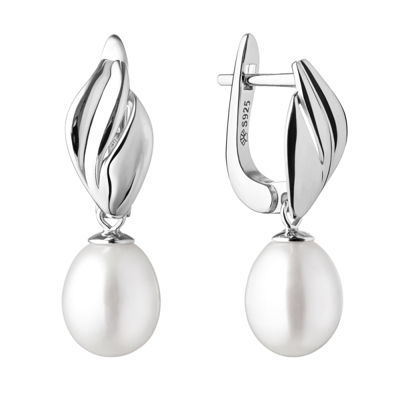 Stříbrné náušnice s bílou řiční perlou Clorinda, stříbro 925/1000, Bílá
