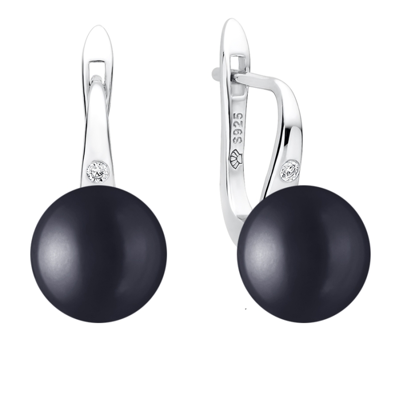 Stříbrné náušnice s černou perlou Clorinda, stříbro 925/1000, Černá