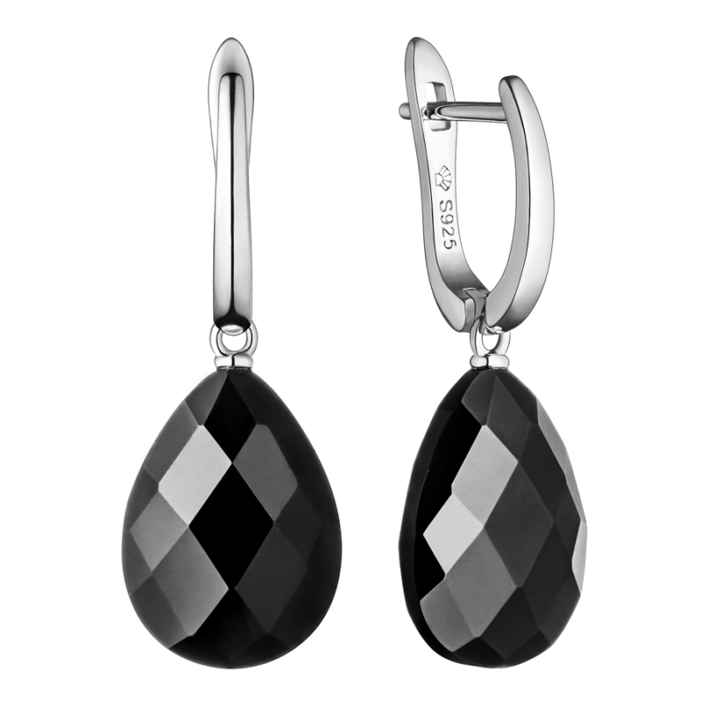 Stříbrné náušnice Anastacia, zdobené černým onyxem, rozhodně musíte mít. Náušnice jsou vyrobeny ze stříbra ryzosti 925/1000 s povrchovou úpravou rhodium. Jestliže máte v oblibě šperky z drahých kamenů, pořiďte si i tento. Stříbrné náušnice nadchnou čistotou svého provedení. Onyx - přírodní polodrahokam je ochranným kamenem proti kletbám a negativní energii. Odstraňuje negativní emoce z těla, chrání před zlem, čistí mysl, dodává vytrvalost a odvahu. Tento minerál má obrovskou moc a majitel onyxových šperků se stává pánem svého osudu, dokáže ovládat své emoce a neúnavně se snaží dosáhnout svých cílů.