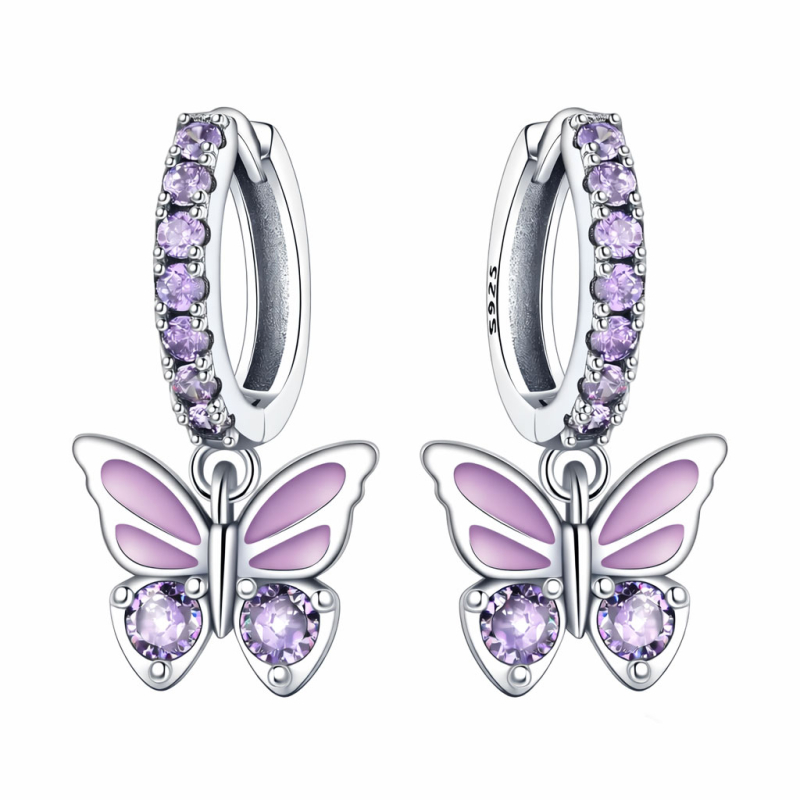 Jemnost, lehkost a nádech romantiky – přesně tak působí tyto stříbrné visací náušnice s motivem motýla v něžném fialovém tónu. Elegantní kruhová klapka je osazena třpytivými kameny, které zachytávají světlo při každém pohybu. Pod ní se vznáší stylizovaný motýl s jemně tónovanými křídly a výraznými kameny v dolní části, jež dodávají šperku hloubku i noblesní lesk.Precizní zpracování podtrhuje harmonii mezi hladkým stříbrným povrchem a třpytivými detaily. Fialové odstíny působí svěže, žensky a zároveň elegantně – ideální kombinace pro jarní a letní období. Náušnice jsou dostatečně výrazné, aby zaujaly, a přesto si zachovávají lehkost a přirozený půvab.Díky pohodlnému zapínání na klapku perfektně drží a jsou vhodné pro každodenní nošení i slavnostnější příležitosti. Jsou symbolem proměny, radosti a svobody – drobným, ale výrazným doplňkem, který dokáže rozjasnit celý outfit i náladu. 💡 Tip: Skvěle doplní lehké šaty v pastelových odstínech nebo květinové vzory. Ideální volba na jarní procházky, zahradní slavnosti či letní večerní posezení.