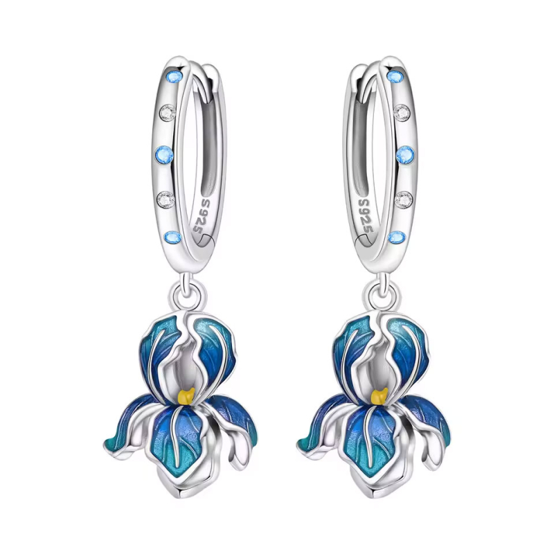 Tyto stříbrné visací náušnice s motivem květu v modro-tyrkysových tónech působí jako drobný umělecký detail inspirovaný přírodou. Jemně tvarované okvětní lístky v kombinaci s lesklým stříbrem vytvářejí harmonii barev i linií. Kruhová klapka zdobená střídáním čirých a modrých kamenů dodává šperku decentní třpyt a podtrhuje jeho elegantní charakter.Precizní zpracování zvýrazňuje strukturu jednotlivých lístků i jejich barevné přechody. Kombinace syté modré, tyrkysové a jemného žlutého detailu ve středu květu působí svěže a sofistikovaně. Šperk zaujme svou lehkostí, ale zároveň dostatečně vynikne jako dominantní doplněk.Náušnice jsou ideální volbou pro ženy, které milují květinové motivy v moderním pojetí. Díky zapínání na klapku se pohodlně nosí po celý den a hodí se jak pro každodenní eleganci, tak pro slavnostní příležitosti. V jejich designu se spojuje jemnost, ženskost a nadčasová krása. 💡 Tip: Perfektně doplní lehké šaty v bílých, modrých či pastelových odstínech. Vyniknou zejména v přirozeném denním světle.