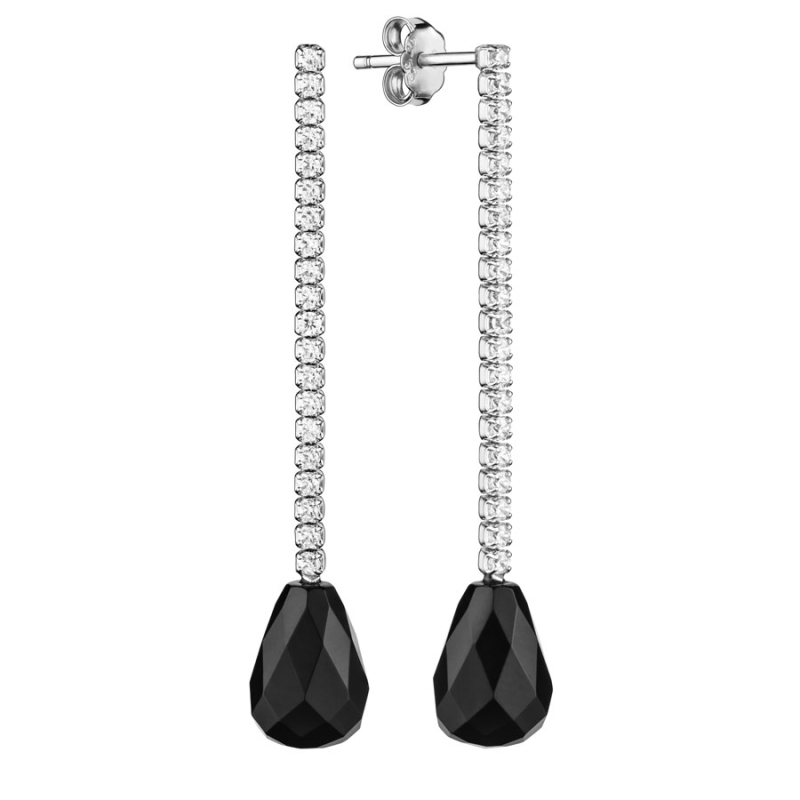 Elegantní stříbrné náušnice s černým onyxem a zářivými zirkony přinášejí do vašeho vzhledu nádech luxusu a nadčasové elegance. Jemné linie zdobené drobnými zirkony vytvářejí okouzlující třpyt, který podtrhne vaši krásu při každé příležitosti. Černý onyx ve tvaru kapky na konci náušnic přidává sofistikovaný kontrast, který zaujme na první pohled. Černý onyx, jako symbol síly a sebevědomí, je dokonalou volbou pro ženy, které chtějí vyzařovat odvážnou eleganci. Kombinace se zirkony přináší jemnost a ženskost, což činí z těchto náušnic univerzální doplněk pro formální události i běžné nošení. Díky své délce a preciznímu zpracování jsou tyto náušnice ideální volbou pro večerní šaty i moderní kancelářský styl. Zkombinujte je s náhrdelníkem ze stejné kolekce a vytvořte dokonale sladěný vzhled, který vás nechá vyniknout v každé společnosti.