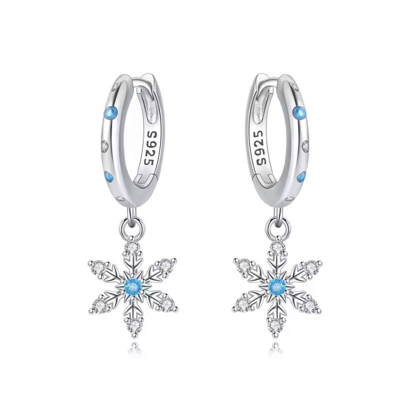 Vstupte do zimní pohádky s těmito stříbrnými visacími náušnicemi, které v sobě nesou křehkou krásu sněhové vločky. Třpytivé zirkony spolu s jemným modrým středem evokují mrazivý třpyt čerstvě napadaného sněhu, zatímco lehké pohupování přívěsku dodává šperku živost a kouzelný lesk. Jemný tvar, pečlivé zpracování a výrazné detaily činí z těchto náušnic elegantní a sváteční doplněk.Šperky jsou vyrobeny ze stříbra 925/1000 a díky malým modrým a čirým kamínkům působí svěže, romanticky a zimně. Kruhový základ je ozdoben drobnými modrými akcenty, které ladí se středem vločky a dodávají šperku harmonii a vyváženost. Zirkony rozeseté po ramenech vločky zachycují světlo tak, jako by právě dopadaly první paprsky ranního slunce na zamrzlé jezero.Náušnice se skvěle hodí ke slavnostnímu zimnímu outfitu – ať už je to vánoční večírek, procházka sněhem ruku v ruce, nebo štědrovečerní večeře s rodinou. Jsou decentní, přitom výjimečné. A především: jsou to náušnice, které v sobě nesou klid, čistotu a krásu zimní krajiny – zhmotněné do jemného šperku. 💡 Tip: Kombinujte tyto náušnice s jemným svetříkem ve smetanové nebo modré barvě a nechte vyniknout jejich ledový třpyt. Vlasy můžete stáhnout do elegantního drdolu, aby vynikly v celé své kráse.