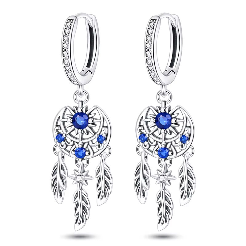 Stříbrné náušnice ve tvaru lapače snů jsou nejen módním doplňkem, ale také symbolickým amuletem pro klid a pozitivní energii. Zářivé modré zirkony dodávají šperkům jedinečný lesk a vytvářejí sofistikovaný vzhled, který zaujme na první pohled. S jejich detailním zpracováním a motivem peříček představují perfektní volbu pro každodenní nošení i zvláštní příležitosti. Skvěle doplní boho styl, letní outfity nebo elegantní večerní šaty, čímž vyniknou na každé akci. 💡Tip: Pro dokonalý boho styl zkombinujte tyto náušnice s volnou sukní, vlnitými vlasy a džínovou bundou. Nezapomeňte na jemný make-up, který podtrhne vaši přirozenou krásu.