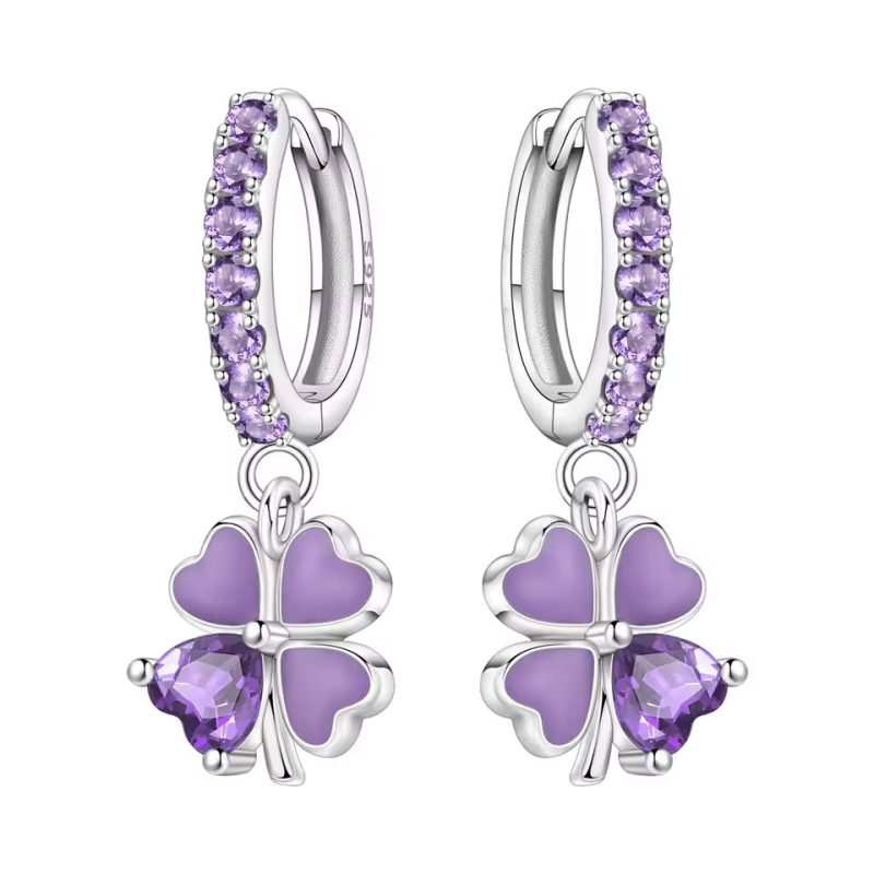 Jsou chvíle, kdy si chcete připomenout, že štěstí přeje odvážným – a někdy i těm, kteří ho nosí blízko u sebe. Tyto stříbrné visací náušnice s motivem čtyřlístku pro štěstí spojují jemnost fialových tónů s třpytem kamenů a vytvářejí šperk, který působí radostně, ale zároveň kultivovaně.Horní kroužek osazený drobnými kameny přechází do něžného čtyřlístku, jehož lístky zdobí hladký barevný detail a výrazný broušený kámen ve tvaru kapky. Fialová barva dodává náušnicím nádech originality a osobité elegance, aniž by působily přehnaně.Jsou ideální pro ženy, které věří na symboly, ale zároveň chtějí moderní a stylový doplněk. Čtyřlístek zde nepůsobí dětsky – naopak se stává sofistikovaným talismanem, který můžete nosit každý den i při výjimečných příležitostech. 💡 Tip: Talisman na důležité dny - vezměte si je na pracovní schůzku, zkoušku či významné jednání. Symbol čtyřlístku může být milým osobním rituálem pro podporu sebevědomí.
