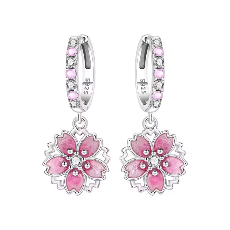 Stříbrné visací náušnice s motivem sakury zaujmou svou něžností i precizním zpracováním. Jemně růžové okvětní lístky s decentním leskem doplňuje třpytivý středový kámen, který dodává květu hloubku a eleganci. Kruhová klapka je zdobena střídáním růžových a čirých kamenů, jež podtrhují romantický charakter celého šperku.Detailní provedení jednotlivých lístků vytváří plastický efekt, díky němuž květ působí živě a přirozeně. Kombinace stříbra, růžových tónů a čirého třpytu evokuje jarní rozkvět a svěžest. Náušnice jsou výrazné, avšak stále jemné – dokonale vyvážený doplněk pro ženy, které milují květinové motivy.Díky zapínání na klapku jsou pohodlné a bezpečné pro celodenní nošení. Hodí se k romantickým šatům i k elegantní halence. Symbol sakury v sobě nese krásu okamžiku, něhu a ženskost, což z těchto náušnic činí šperk s hlubším významem. 💡 Tip: Perfektně doplní pastelové šaty, světle růžovou halenku či jemné květinové vzory. Ideální pro období jara a rozkvetlé sezóny.
