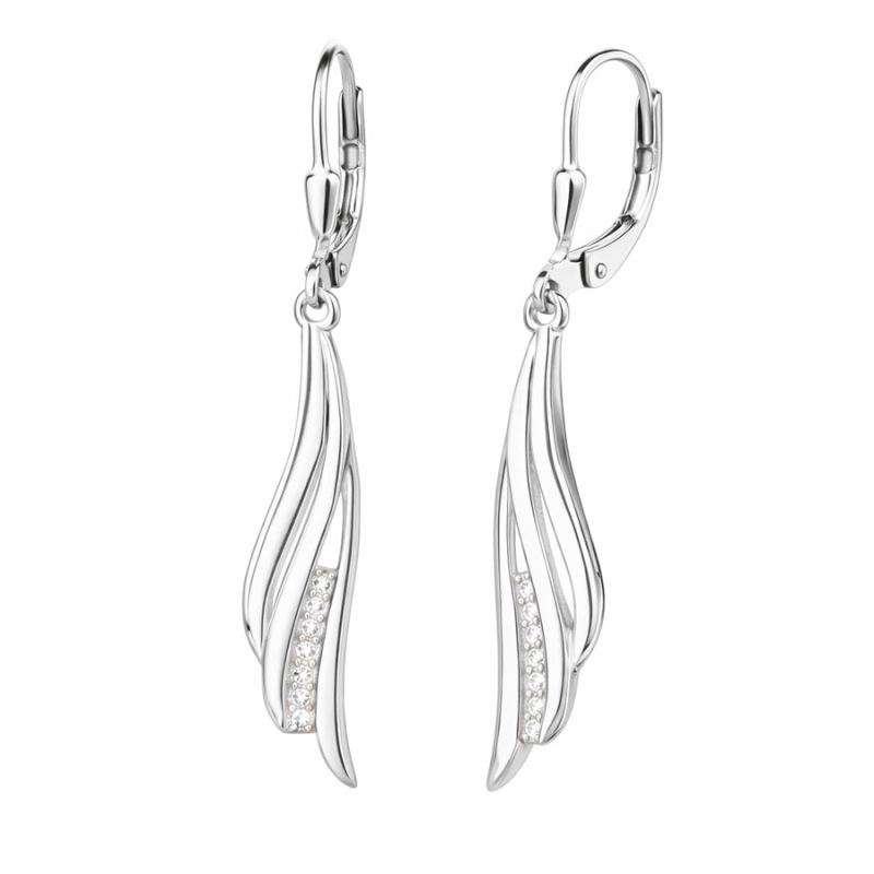 Stříbrné visací náušnice s jemně zvlněným designem a třpytivým detailem působí lehce, vzdušně a přesto velmi výrazně. Jejich tvar evokuje pohyb hedvábné stuhy ve větru – ladný, promyšlený a plný přirozené elegance. Krásně kopírují linii krku a opticky ho prodlužují.Lesklý povrch stříbra 925/1000 dodává náušnicím decentní zrcadlový efekt, zatímco čirá linie drobných kamínků v přední části vnáší do celého šperku jemný třpyt. Celkový vzhled je moderní, ženský a ideální pro každodenní nošení i výjimečné příležitosti.Díky pohodlnému zavírání na klapku se náušnice snadno nasazují a drží bezpečně na uchu. Kombinují krásu jednoduchosti s rafinovaností křivek, které přitahují pozornost. Zaujmou ženy, které milují šperky s osobitostí, elegancí a jemným leskem. 💡 Tip: Využijte jejich univerzální design a noste je jak do práce, tak i na společenské akce – perfektně doladí jak formální, tak neformální outfit.