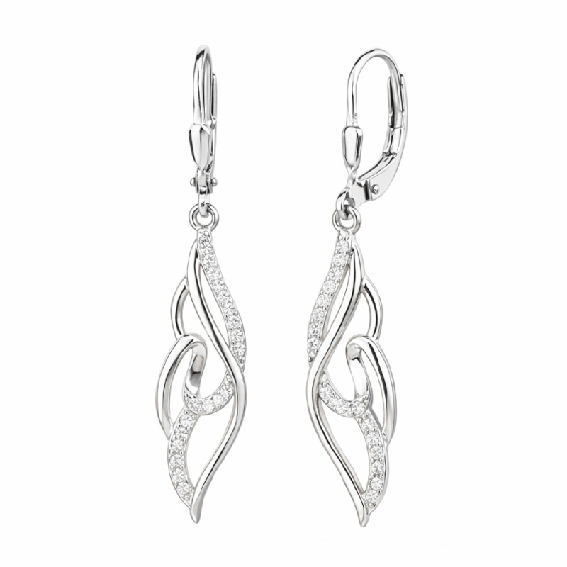 Luxusní visací náušnice ze stříbra 925/1000 zaujmou svým originálním, lehce zatočeným tvarem, který působí jako jemná vlna zachycená v pohybu. Jejich design vychází z přírodních linií a ladné asymetrie, což jim dodává moderní a sofistikovaný výraz. Na první pohled okouzlí svou harmonií tvaru a detailů.Každá náušnice je zdobená drobnými čirými zirkony, které decentně kopírují linii kovu a vytvářejí jemný třpytivý efekt při každém pohybu hlavy. Díky praktickému zapínání na klapku se snadno nasazují a bezpečně drží po celý den. Povrch je hladký, lesklý a velmi precizně zpracovaný, což podtrhuje kvalitu šperku.Náušnice se hodí pro ženy, které hledají rafinovaný doplněk s osobitým stylem. Krásně vyniknou při slavnostních příležitostech, ale i jako výrazný akcent k minimalistickému outfitu. Jejich nadčasová elegance je ideální volbou pro ženy s citem pro estetiku a detail. 💡 Tip: Elegantní volba na pracovní jednání, kulturní večer i slavnostní událost – náušnice přitahují pozornost svou ladností, nikoli okázalostí.