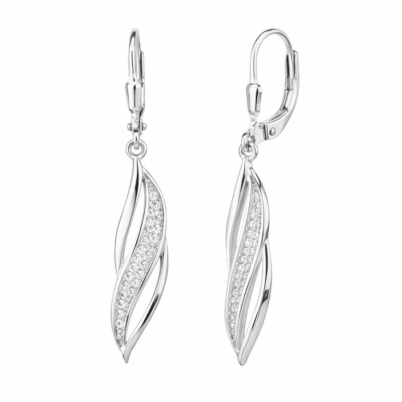 Elegantní linie, jemné zatočení a třpytivý akcent – přesně těmito detaily zaujmou tyto stříbrné náušnice na první pohled. Jejich originální tvar připomíná stylizovanou slzu či list, který se lehce stáčí v elegantním křivkovitém pohybu. Zirkonová linie uprostřed navíc přidává decentní záři, která nádherně zachycuje světlo při každém pohybu.Zavěšení na klasickou klapku zaručuje nejen bezpečné nošení, ale i komfort po celý den. Stříbro působí čistě a nadčasově, zirkony dodávají slavnostní jiskru – dohromady vzniká harmonický šperk, který nevyžaduje přílišné doplňky a přesto perfektně dotváří celý outfit.Tyto náušnice ocení každá žena, která hledá šperk vhodný jak do práce, tak na výjimečné chvíle. Vyniknou při formální příležitosti, ale i v minimalistickém každodenním stylu. Jsou to náušnice, které neokázale podtrhnou vaši osobnost. 💡 Tip: Díky zapínání na klapku se náušnice velmi snadno nasazují a pevně drží. Jsou ideální volbou i pro ženy, které nemají rády puzety nebo šroubovací zapínání.