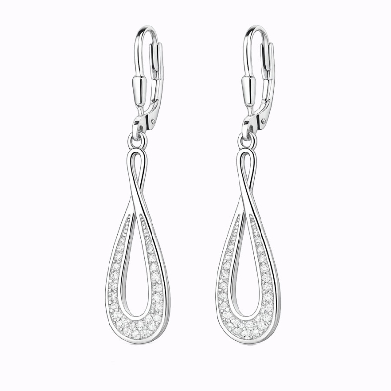 Elegantní visací náušnice ze stříbra vynikají svým jemně propleteným designem ve tvaru kapky, která se směrem nahoru přirozeně stáčí do symbolického uzlu. Jejich křivky působí lehce a vzdušně, zatímco vnitřní linie osazená třpytivými čirými zirkony přináší jiskru a světelný efekt při každém pohybu.Precizní zpracování z kvalitního stříbra 925/1000 zaručuje nejen vysoký lesk, ale i trvanlivost a odolnost vůči ztrátě barvy. Pohodlné klapkové zapínání zajišťuje bezpečné nošení a zároveň podtrhuje celkovou eleganci. Náušnice jsou navrženy tak, aby lichotily tvaru obličeje a působily prodlužujícím dojmem.Tento šperk je ideální volbou pro slavnostní události, večerní příležitosti, ale i jako sofistikovaný doplněk k business outfitu. Kombinace minimalismu a jemného třpytu z nich činí nadčasový klenot, který najde své místo v každé šperkovnici. 💡 Tip: Pro zvýraznění linie krku a přirozené elegance doporučujeme náušnice zkombinovat s hladkým culíkem nebo elegantním drdolem – vynikne tak jejich jemná silueta i třpytivý detail.
