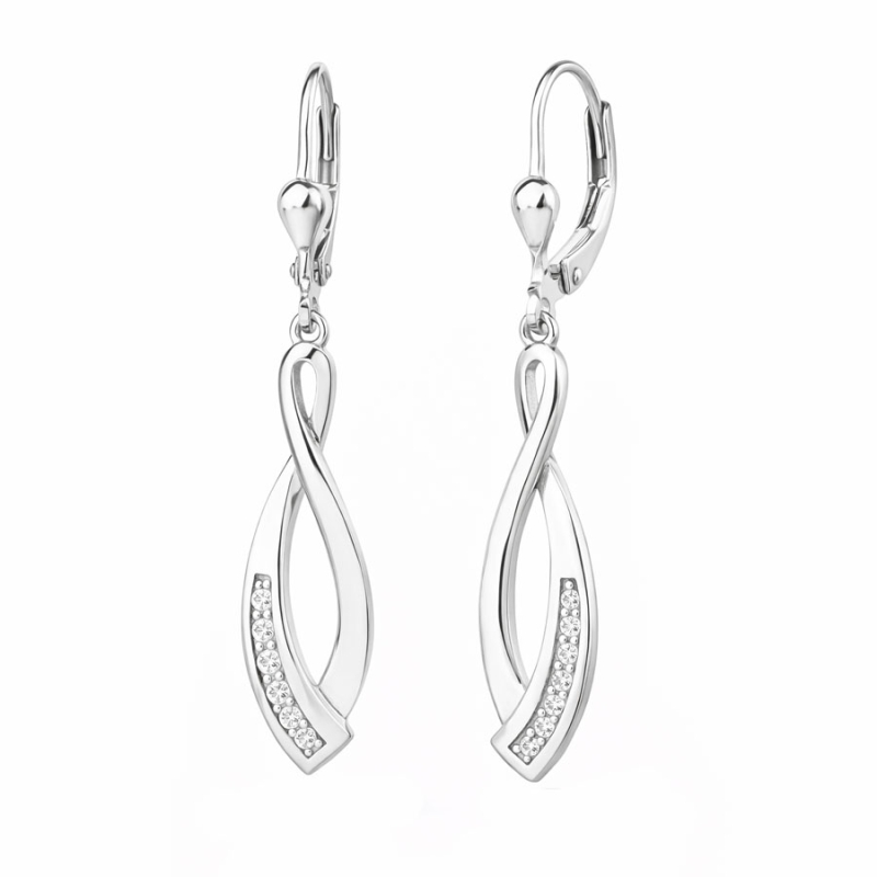 Elegantní visací náušnice ze stříbra 925/1000 zaujmou jemným krouceným tvarem a precizně zasazenými zirkony, které dodávají šperku decentní třpyt. Svým ladným designem připomínají protáhlou smyčku – jako symbol ženské elegance, lehkosti a pohybu.Stříbrný lesk a křišťálově čiré kameny vytvářejí harmonii, která se hodí ke každému stylu – od každodenního outfitu až po večerní šaty. Díky klapkovému zapínání jsou náušnice nejen krásné, ale i praktické a pohodlné pro celodenní nošení.Tento nadčasový design se skvěle kombinuje s dalšími šperky z bílých kovů a dodá celému vzhledu jemnost a sofistikovaný detail. Vhodné pro ženy, které si potrpí na vytříbený vkus a detailní zpracování. 💡 Tip: Díky lehké konstrukci a spolehlivému zapínání můžete náušnice nosit celý den bez pocitu tíhy – ideální volba pro dlouhé pracovní dny i večerní akce.