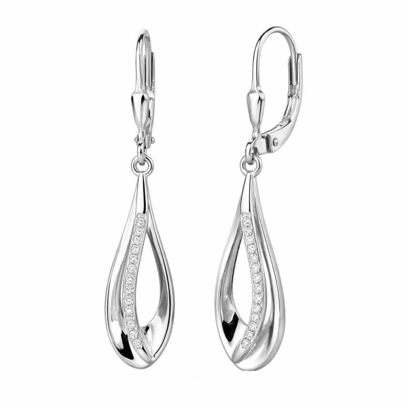 Jemný lesk stříbra, ladný tvar a precizní linie zirkonů – tyto stříbrné náušnice zaujmou svou vyvážeností a elegantním provedením. Křivka tvaru slzy, prohnutá do stylizovaného pohybu, působí velmi žensky a lehce. Světlo se na lesklém povrchu stříbra i třpytivém pásku zirkonů krásně odráží při každém pohybu hlavy.Visací tvar je protáhlý, opticky zeštíhluje kontury obličeje a dodává celkovému výrazu noblesní nádech. Bezpečné zapínání na klapku zajišťuje pohodlné nošení po celý den. Stříbro působí čistě a univerzálně, takže se náušnice snadno kombinují s různými outfity i šperky.Tyto náušnice osloví každou ženu, která hledá šperk, jenž spojuje eleganci s decentním třpytem. Jsou ideální volbou pro běžné nošení, ale i pro slavnostní příležitosti, kdy potřebujete dodat outfitu jemný, ale výjimečný detail. 💡 Tip: Vyniknou s vyčesanými vlasy nebo elegantním drdolem – umožní tak dokonale vyniknout jejich protáhlému tvaru a lesku.