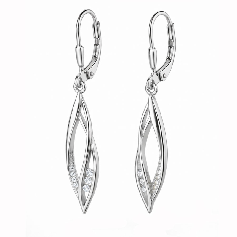 Tyto elegantní stříbrné visací náušnice okouzlí svou čistou linií a jemnou lehkostí. Dva propletené oblouky vytvářejí dynamický tvar inspirovaný přírodou, který v sobě nese jak vzdušnost, tak vnitřní harmonii. Jemné zirkony zasazené podél vnitřní linie dodávají šperku decentní třpyt, který se krásně rozzáří při každém pohybu.Náušnice působí velmi lehce a přirozeně, a přesto nezůstávají bez povšimnutí. Jejich design evokuje styl moderní éterické elegance – působí delikátně a přitom rafinovaně. Praktické klapkové zapínání zajišťuje pohodlné nošení a bezpečnost po celý den.Skvěle doplní večerní outfit, ale i minimalistické denní kombinace. Jsou ideální volbou pro ženy, které hledají šperk s jemným nádechem originality a nadčasového šarmu. Hodí se ke slavnostním událostem, ale i jako elegantní doplněk do práce nebo na schůzku. 💡 Tip: Pokud hledáte dárek pro ženu s vytříbeným vkusem, tyto náušnice představují krásnou volbu – elegantní, decentní a vždy nositelné.
