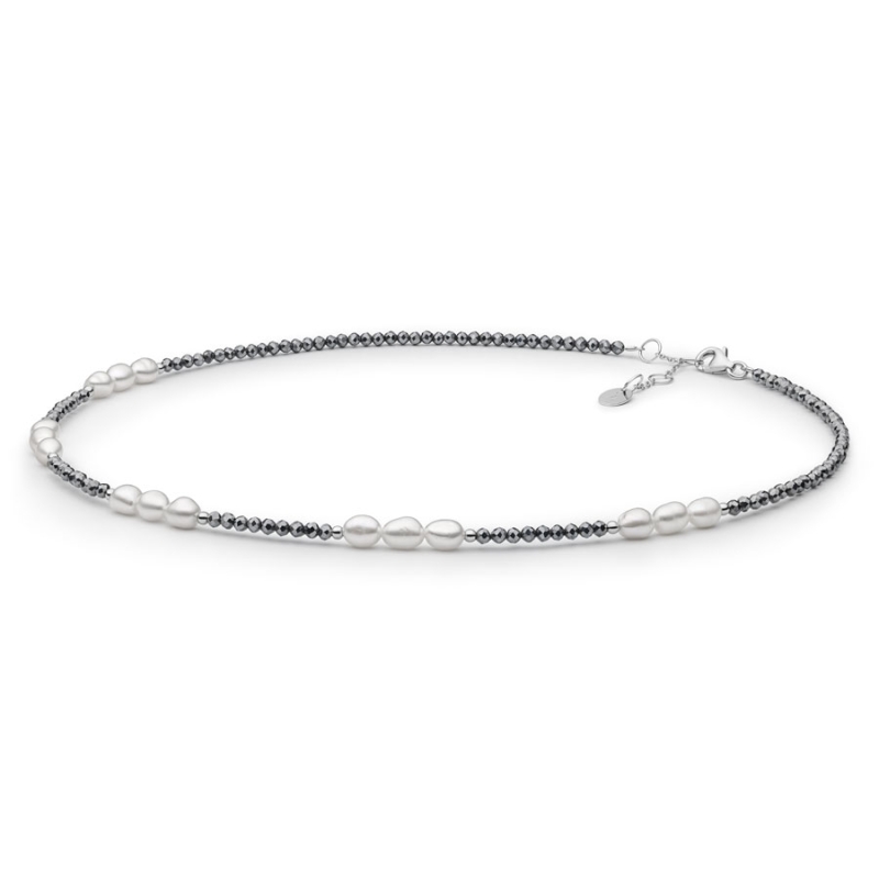 Tento sofistikovaný stříbrný náhrdelník kombinuje jedinečné vlastnosti minerálu terahertz s elegantními sladkovodními perlami. Terahertzové korálky dodávají šperku moderní a lesklý vzhled, zatímco perly přinášejí nádech klasické elegance. Spojení těchto prvků vytváří harmonický doplněk, který podtrhne váš osobitý styl. Díky své délce a možnosti prodloužení je náhrdelník ideální pro různé příležitosti, ať už jde o formální události nebo každodenní nošení. Minimalistický design s jemnými detaily zdůrazňuje ženskou eleganci a zároveň působí decentně a nenuceně. Kombinace stříbra a perel se hodí ke každému outfitu a dodá mu šmrnc. Tento náhrdelník je také perfektním dárkem pro výjimečné ženy, které oceňují spojení přírodních materiálů a moderního designu. Ať už ho darujete nebo si ho pořídíte pro sebe, tento šperk jistě zaujme svým nadčasovým stylem a kvalitou zpracování.