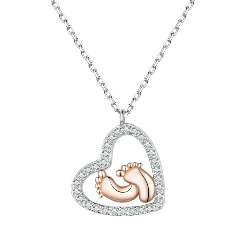 Představujeme vám tento nádherný stříbrný náhrdelník, který okouzlí každého svým unikátním designem. Přívěsek ve tvaru srdce je zdobený jemnými krystaly, které dodávají šperku neodolatelný lesk. Uvnitř srdce najdete dojemné zobrazení malých nožiček, symbolizujících něžnost a nový začátek. Tento šperk je ideálním dárkem pro novopečené maminky, které chtějí mít vzpomínku na první kroky svého dítěte stále u sebe. Srdce, které obklopuje malé nožičky, představuje nekonečnou lásku a péči. Náhrdelník je vyroben z kvalitního stříbra, což zajišťuje jeho dlouhou životnost a stálý lesk. Nositelka tohoto šperku se může cítit elegantně a zároveň nosit symbol, který má hluboký osobní význam. Díky svému jemnému designu je tento náhrdelník vhodný pro každodenní nošení i pro zvláštní příležitosti. Kombinace moderního stylu a klasické elegance z něj činí univerzální doplněk, který se hodí k jakémukoli outfitu. Nechte se unést jeho krásou a připomínejte si důležité okamžiky života každý den.