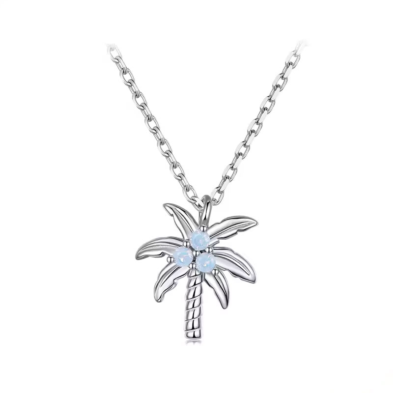 Stříbrný náhrdelník s přívěskem ve tvaru kokosové palmy v sobě nese atmosféru exotických pláží, slunečních paprsků a jemného šumění moře. Tři jemné opalizující kamínky uprostřed palmy symbolizují kokosové ořechy a dodávají šperku lehce hravý a zároveň elegantní vzhled.Detailní zpracování listů palmy ze stříbra 925/1000 zajišťuje jemný lesk a kvalitní vzhled. Díky decentnímu rozměru je náhrdelník ideální pro každodenní nošení i jako doplněk k letním outfitům. Jeho lehkost a jednoduchost z něj činí šperk, který snadno sladíte s dalšími doplňky.Tento motiv ocení každá milovnice slunce, moře a exotiky. Palmy bývají vnímány jako symbol klidu, dovolené a svobody. A právě tuto náladu šperk evokuje – jako připomínku bezstarostných dnů, ať už jste kdekoliv. V kombinaci s prstýnkem (ZDE) a náušnicemi (ZDE) ze stejné kolekce vytvoříte dokonale sladěný letní look. 💡Tip: Tento náhrdelník se skvěle hodí k letním šatům s výstřihem do V nebo ke krémovému topu s odhalenými rameny. Kombinujte ho s náramkem nebo náušnicemi s mořskou tématikou pro dokonalý prázdninový look.