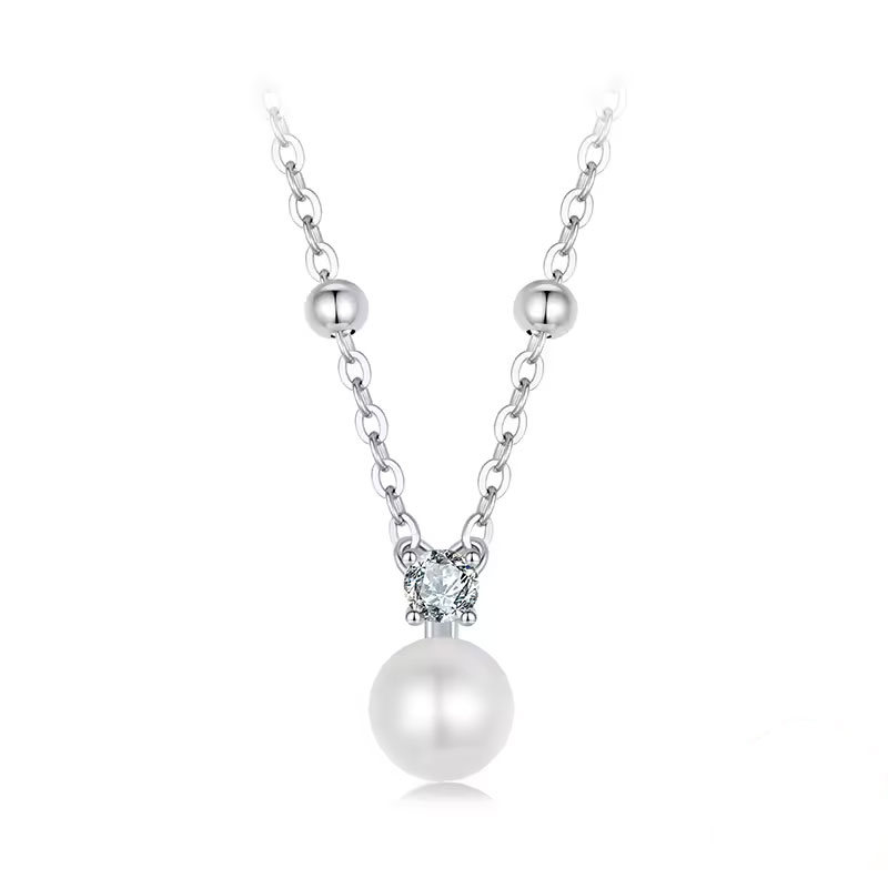Tento elegantní stříbrný náhrdelník spojuje jemnost a sofistikovanost v jednom nadčasovém šperku. Dominantním prvkem je bílá perla, která symbolizuje čistotu a ženskost, doplněná oslnivým moissanitem o velikosti 0,1 ct. Jemný řetízek je zdoben decentními kuličkami, které dodávají náhrdelníku moderní a hravý vzhled. Díky své minimalistické eleganci se skvěle hodí ke každodennímu nošení i k formálním příležitostem.Moissanit, který září jako pravý diamant, dodává náhrdelníku luxusní nádech, zatímco perla přináší klasickou krásu. Tento šperk je ideální volbou pro ženy, které ocení nadčasový styl a precizní zpracování. Může být také dokonalým dárkem k narozeninám, výročí či jiným významným okamžikům. 💡Tip: Tento náhrdelník nádherně doplní jemné perlové nebo moissanitové náušnice. Pro dokonalý vzhled jej zkombinujte s minimalistickým stříbrným prstenem nebo náramkem ve stejném stylu.