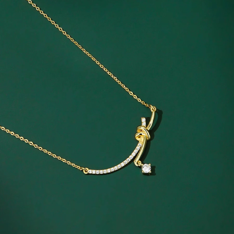 Pozlacený náhrdelník ze stříbra 925/1000 se zajímavým uzlovým prvkem a jemnou linií zirkonů okouzlí svou decentní elegancí. Design tvoří dvě elegantně zakřivené linie, které se symbolicky spojují uzlem, pod kterým se jemně pohupuje třpytivý zirkon jako drobný šperk navíc. Tento detail působí jako symbol propojení a harmonie.Celý přívěsek vytváří dojem lehkosti a plynulého pohybu, jako by šperk kreslil elegantní oblouk na pokožce. Lesklý povrch zlacení krásně kontrastuje s jemným třpytem kamínků, čímž náhrdelník získává rafinovaný a ženský vzhled. Minimalistický tvar z něj dělá ideální doplněk k večerním šatům i jednoduché halence.Díky své jemné velikosti a výjimečně zpracovanému detailu se tento kousek stává každodenním šperkem, který nositelce dodává šmrnc a pocit výjimečnosti. Je vhodný i jako dárek – potěší každou ženu, která ocení eleganci s hlubším významem. 💡Tip: Náhrdelník s uzlem může symbolizovat nerozlučné pouto – ať už partnerské, přátelské nebo životní rozhodnutí. Vhodný jako dárek z lásky.