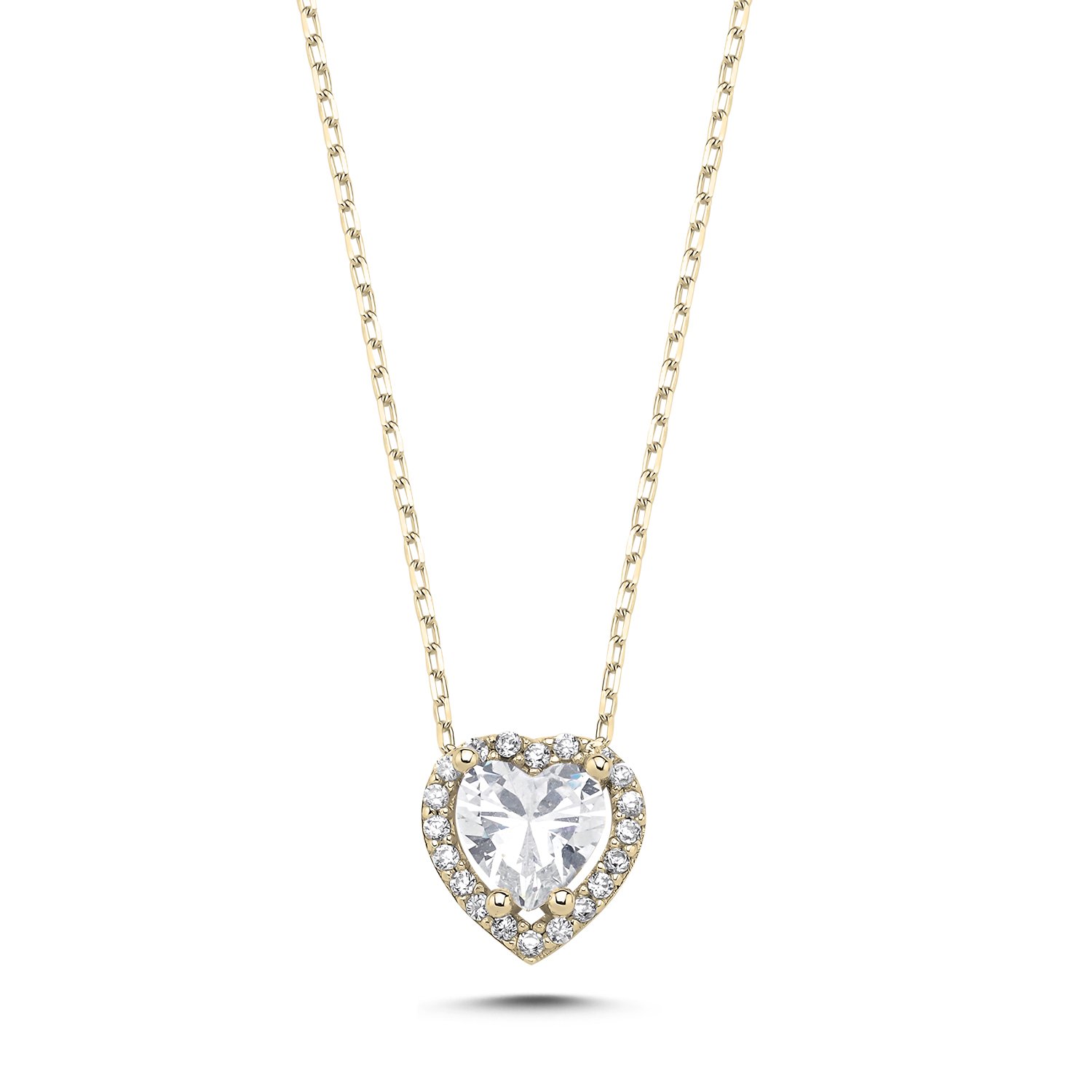 - Dominantou přívěsku je zirkon ve tvaru srdce, obklopený drobnými zářivými zirkony.