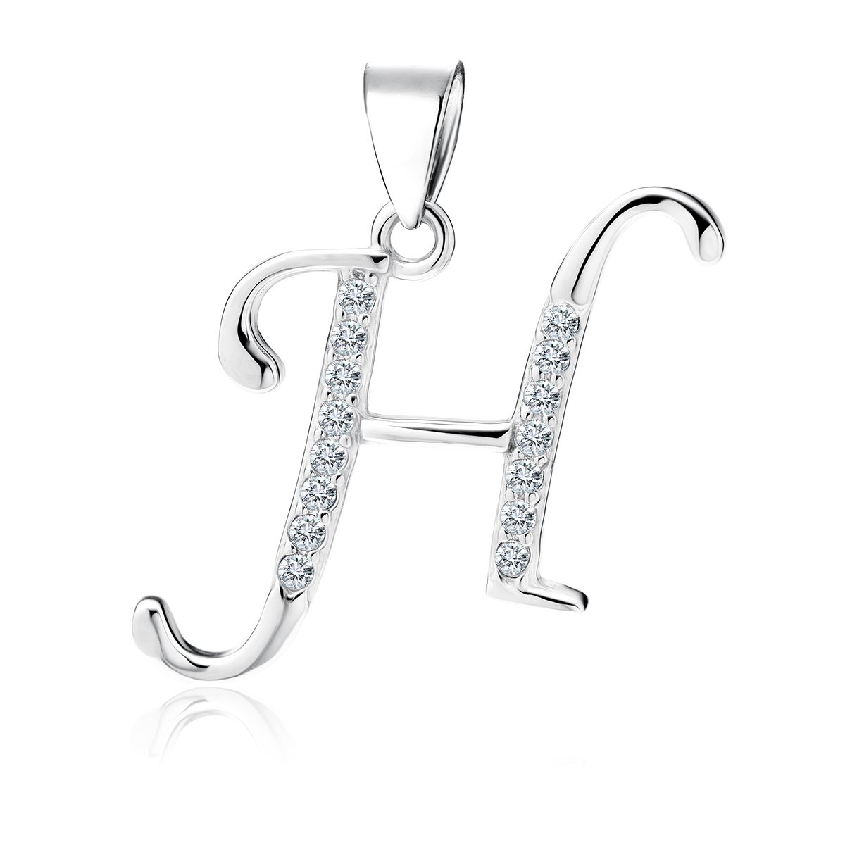 - Stylový přívěsek ve tvaru písmene H, rozměry 23 x 14 mm.