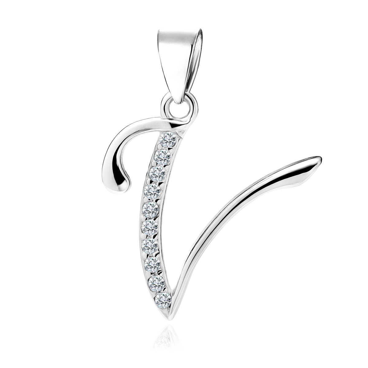 - Stylový přívěsek ve tvaru písmene V, rozměry 22 x 14 mm.