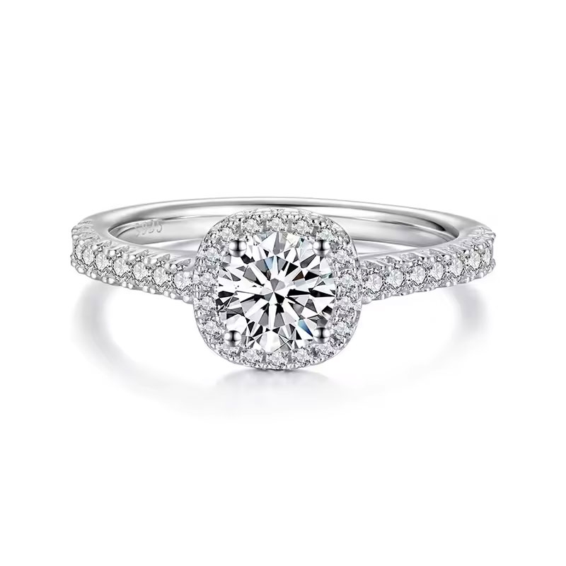 Tento elegantní stříbrný prsten s centrálním 0,5 ct moissanitem v kulatém brusu je navržen tak, aby zanechal nezapomenutelný dojem. Kámen je zasazen do efektní halo obruby tvořené drobnými zirkony, které umocňují jeho oslnivý lesk a přirozeně přitahují pozornost. Jemná linie prstenu je dále zdobena zirkony po celé délce obroučky, což podtrhuje jeho luxusní charakter.Moissanit – minerál s extrémním leskem a tvrdostí blízkou diamantu – je zde dokonale doplněn drobnými zirkony, které mu dávají vyniknout z každého úhlu. Rhodiovaná povrchová úprava stříbra 925/1000 navíc zajišťuje dlouhodobou krásu a odolnost proti zmatnění. Výsledkem je harmonický celek, který zaujme milovníky rafinované elegance.Prsten je ideální volbou pro slavnostní chvíle, zásnuby i každodenní nošení, pokud hledáte šperk s výrazem a jemností zároveň. Nadčasový design s nádechem romantiky sluší každé ruce a snadno se kombinuje s dalšími doplňky. 💡Tip: Pokud hledáte zásnubní prsten, který působí luxusně, ale je cenově dostupnější než diamant, moissanit je tou pravou volbou. Díky vyšší brilanci než diamant a etickému původu si získává srdce mnoha žen po celém světě.