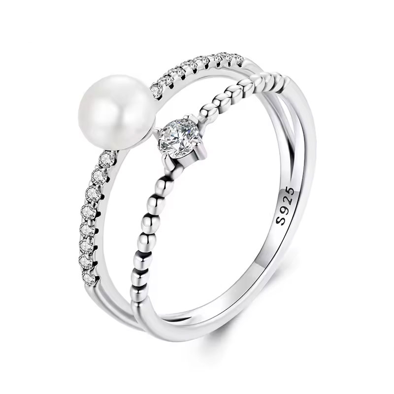 Tento nádherný stříbrný prstýnek spojuje jemnou eleganci s moderním designem. Dva tenké kroužky jsou zdobené třpytivými zirkony, které dodávají šperku luxusní lesk. Dominantním prvkem je jemná perla, která podtrhuje nadčasovou krásu a ženskost. Díky této kombinaci je prsten nejen sofistikovaným doplňkem, ale i symbolem vkusu a elegance.Prsten je ideální volbou pro slavnostní příležitosti i každodenní nošení. Jemné zpracování a precizně osazené kameny z něj činí dokonalý šperk pro ženy, které hledají jedinečný doplněk. 💡Tip: Tento prstýnek je skvělým dárkem pro ženu, která miluje elegantní a decentní šperky. Kombinace perly a třpytivých zirkonů přináší nadčasovou krásu, která se hodí ke každému stylu.