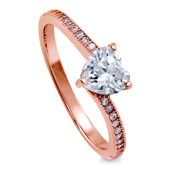 • Stříbrný prsten s růžovým zlacením a motivem srdce.