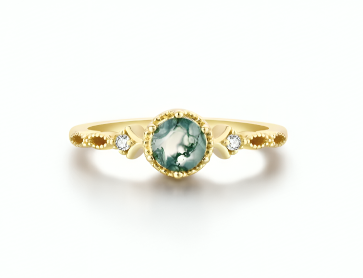 - Každý prstýnek je originál – mechový achát může mít odstíny od jemně bílé, přes svěží zelenou až po hlubokou tmavě zelenou.