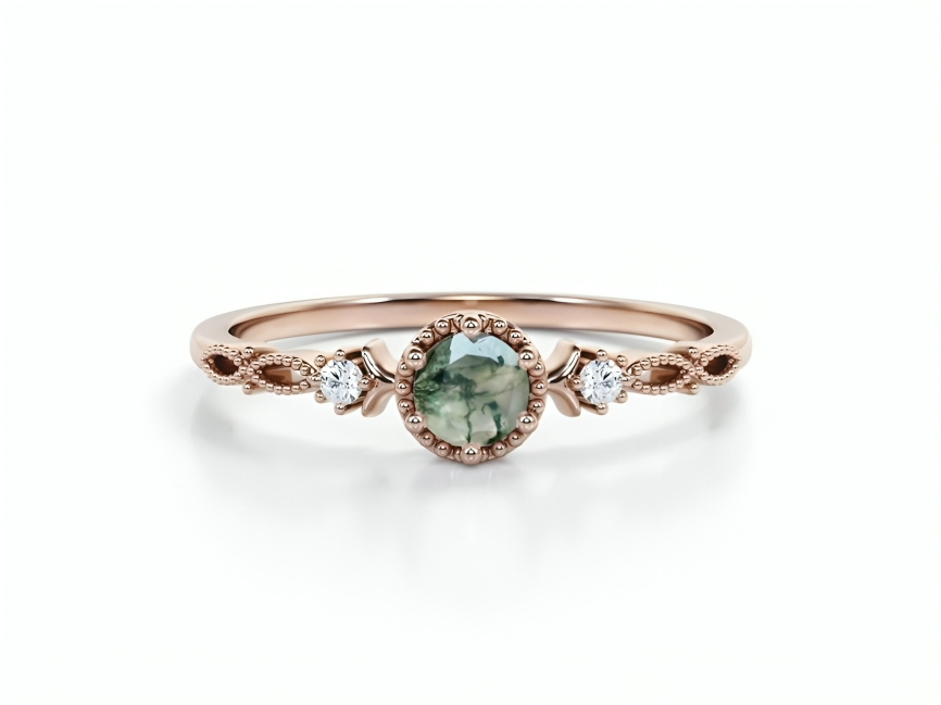 - Luxusní zásnubní prstýnek s kouzelným mechovým achátem.