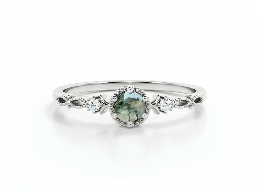- Každý prstýnek je originál – mechový achát může mít odstíny od jemně bílé, přes svěží zelenou až po hlubokou tmavě zelenou.