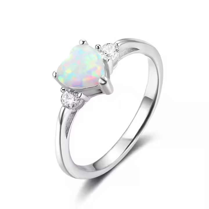 - Hlavní kámen je syntetický opál ve tvaru srdce, 6 x 6 mm.