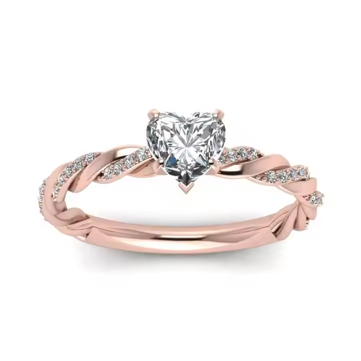 - Stříbrný prsten s růžovým zlacením a motivem srdce.