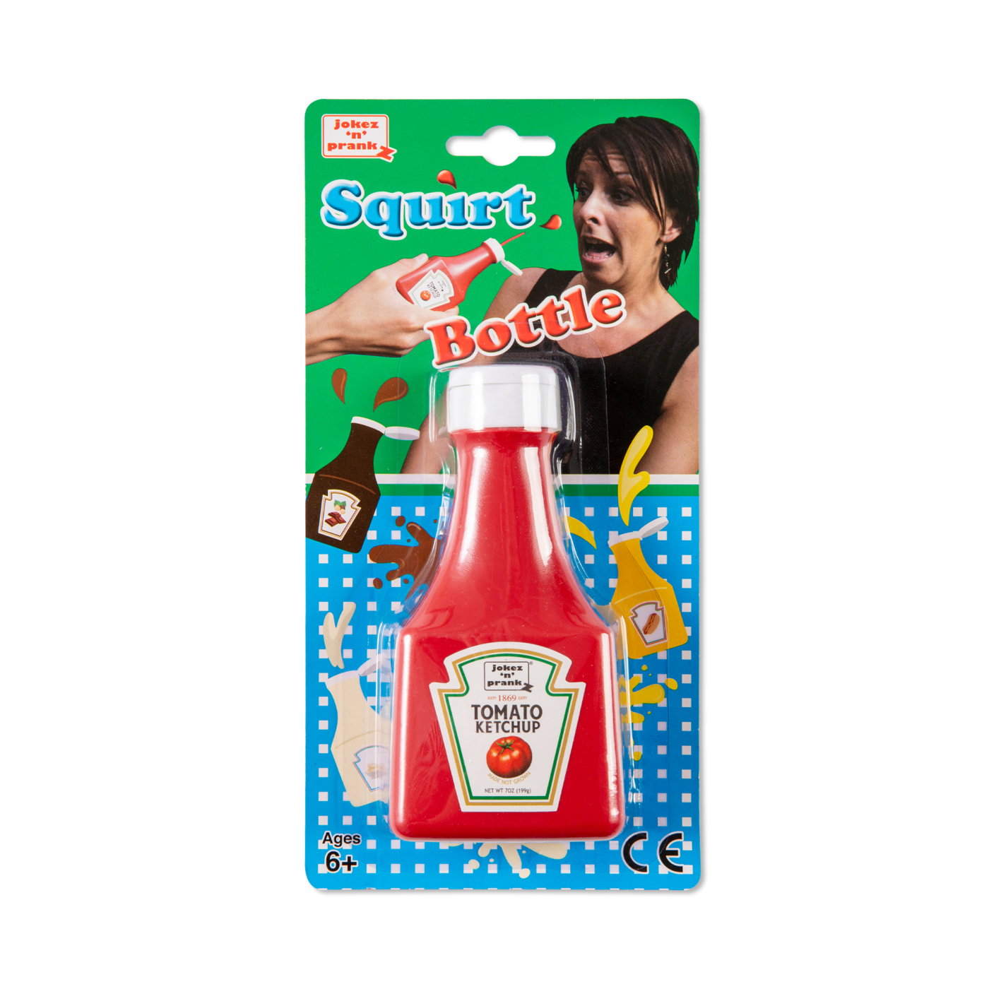 Vložte červenou šňůru do láhve a nechte konec vyčnívat. Zeptejte se oběti, zda si přeje kečup, a pak silně zmáčkněte láhev – šňůra vystřelí jako pravý kečup! Smějte se, až budou vaši přátelé překvapeně lapat po dechu. Rozměr láhve: 12,8 × 6 × 3 cm Balení obsahuje: 1 ks stříkacího kečupu