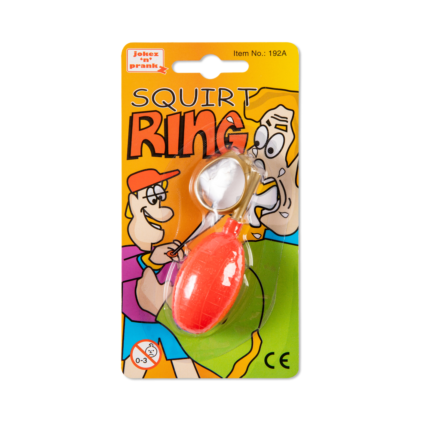 Stříkací prstýnek je nenápadná ptákovina, která pobaví na každé párty. Na první pohled vypadá jako obyčejný zlatý prstýnek s lebkou, ale uvnitř se skrývá malý vodní trik. Rozměry: 2,3 × 2,3 cm (7,3 cm délka s balónkem) Balení obsahuje: 1 ks plastového prstýnku s plnícím balónkem