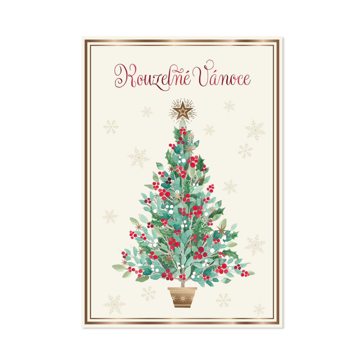 Vánoční přání se zlatou a červenou ražbou zdobí nápis Kouzelné Vánoce. Uvnitř přání najdete milou básničku a krátké univerzální věnování. Text uvnitř přání: Za zvuku zvonečků a vůně cukroví, nastává čas, který všem napoví, že s klidem na duši, s radostí u srdce, vítáme po roce veselé Vánoce. Krásné vánoční svátky, spoustu milých dárků i nezapomenutelných okamžiků přeje... Součástí balení je i bílá obálka. Rozměry: 13,5 × 19,5 cm