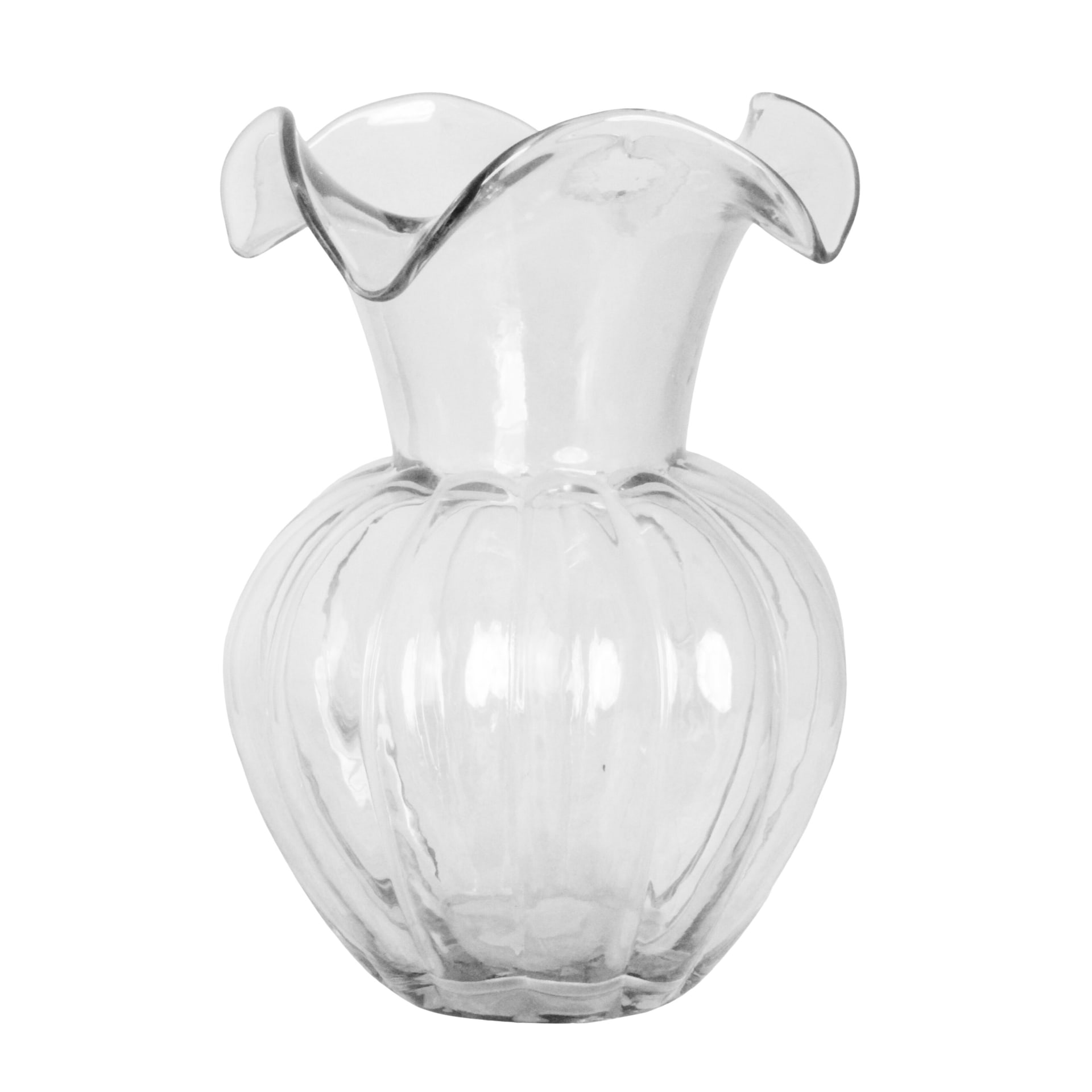 Jestliže dáte květinám tu správnou vázu, vyniknou ještě víc – a právě tato čirá skleněná váza je k tomu jako stvořená. Díky svému žebrovanému tělu a výraznému vlnitému okraji působí velmi romanticky a elegantně.