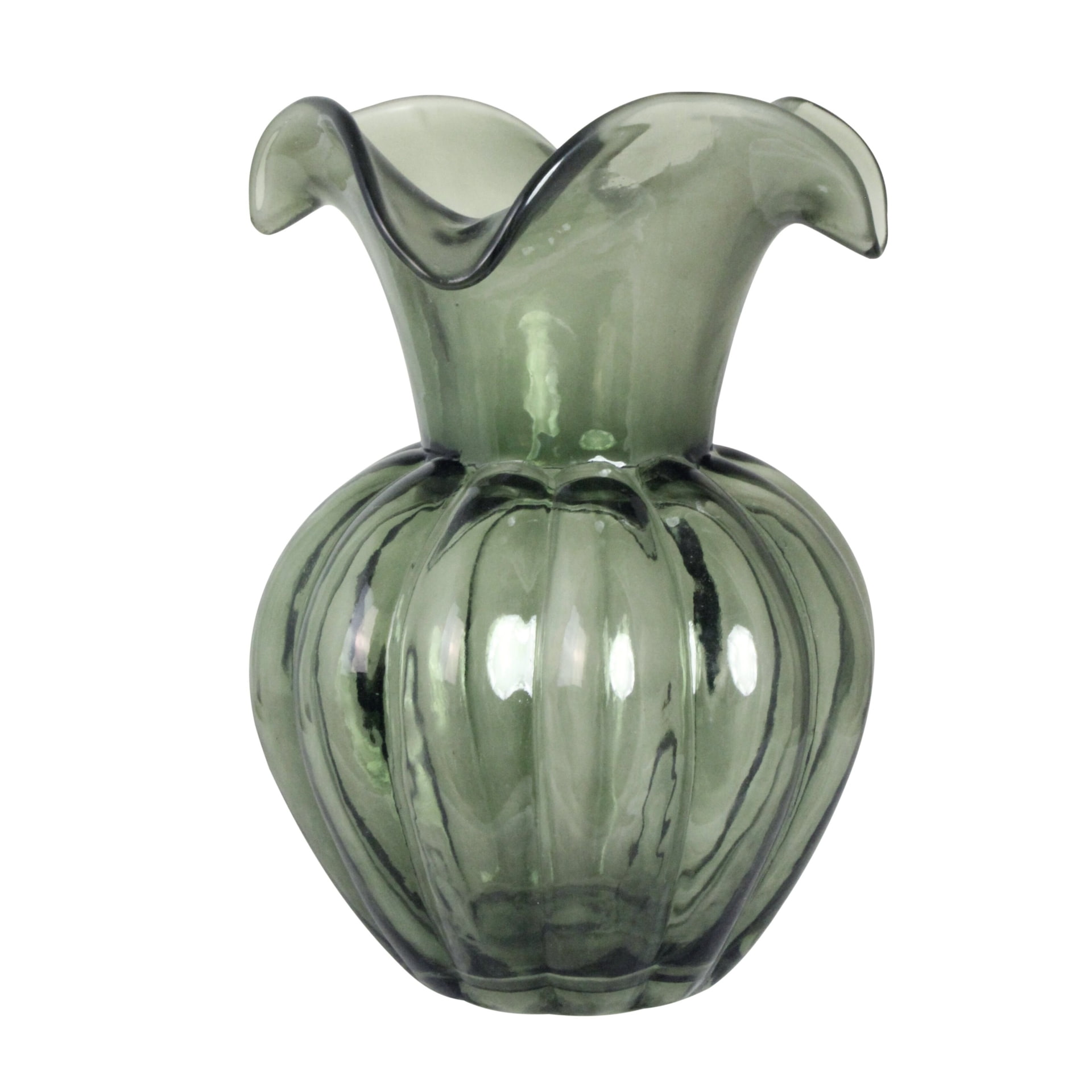 Strömshaga Skleněná váza Sally Green, zelená barva. Skleněná váza s vlnitým okrajem od švédské značky Strömshaga představuje jemnou eleganci ve vintage stylu.