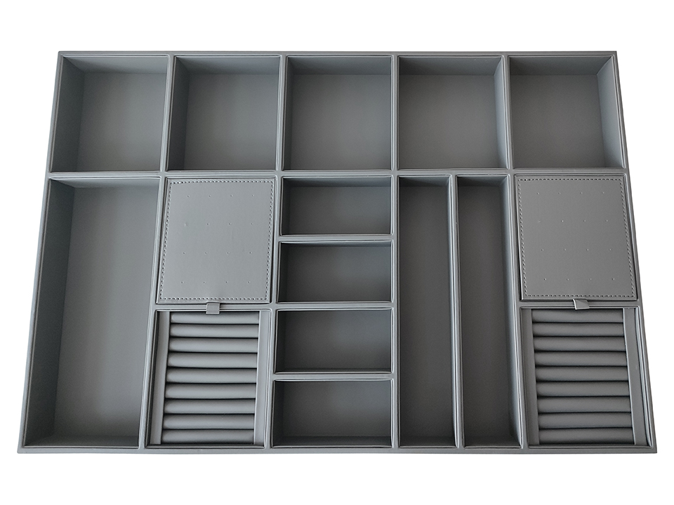 • Pro přehled a pořádek v doplňcích k oblečení s našimi stylovými organizéry• Se Strong organizéry (vklady do zásuvek) na prsteny, náušnice, řetízky, hodinky či náramky, budete mít vždy vše po ruce• Na každý typ doplňku je vyčleněn samostatný prostor• Šperkovnice mají elegantní design, jsou vyrobeny z pevného MDF, povrchovou vrstvu tvoří umělá kůže v kombinaci se sametemProvedení rozměru hloubky sedí přesně pro StrongMax, StrongBox, Legrabox a Antaro při délce výsuvu 500 mmV organizéru najdete spoustu přihrádek na vaše cennosti a také krabičku s víčkem pro šperky, které chceme, aby zůstaly ukrytéRozměr: 722x58x473mm