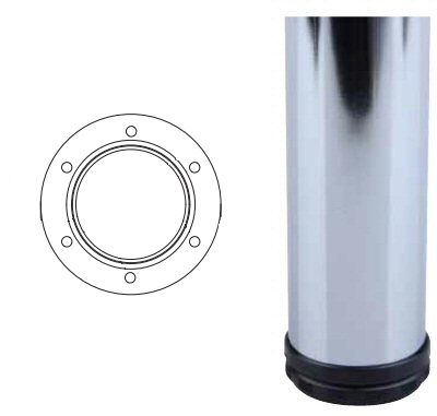 Stolová noha kulatá pro stůl do kuchyně nebo stůl do kancelářeDoba instalace -je v případě předvrtání otvorů a použití aku šroubováku velmi rychláPevnost- spojení mezi přírubou a nohou je až několikanásobně vyšší oproti jiným modelůmTechnologie- patentované spojení bez sváru; nedochází k deformaci nohy v místě sváruPři koupi balení (4 nohy)- obsahuje 4 kompletní nohy včetně přírub a plastových retifikačních šroubů- vruty pro spojení se stolovou deskou (6 ks na jednu nohu, 5x25mm s půlkulatou hlavou)- šablona k instalaci do rohu stoluDalší vlastnosti- tloušťka stěny 1mm- průměr nohy 60mm- možnost objednat náhradní díly viz související produkty (retifikční šroub, příruba)Barva chrom