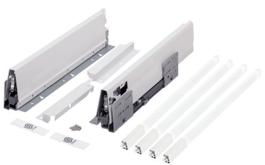 Technická specifikace- hladký design bočnic- synchronizovaný celovýsuv s tlumeným dotahem- nosnost 35kg- integrované 3D nastavení čela- minimální výšková světlost otvoru pro zásuvku 225mm- minimální vnitřní hloubka korpusu 560mmSada obsahuje- bočnice L+P- výsuv L+P- držák zad L+P- reling L+P- držák čela 2x- krytka s logem Strong 2xPozor dřevěné čelo, dno a záda zásuvky nejsou součástí- rozměry přířezů viz obrázek číslo 2Pro použítí jako vnitřní zásuvka je nutno dokoupit:- 1x držák čelního profilu- 1x čelní profil- 1x relingVolitelné příslušenství- vnitřní děleníMontážní pomůcky- označovač čela- šablona pro reling- označovací šablona Strong