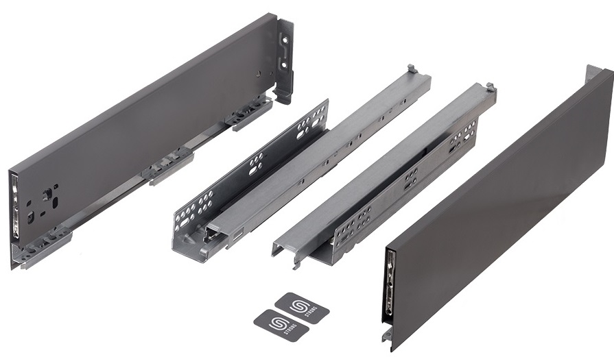 StrongMax = celovýsuv s tlumením a úzkou dutou bočnicí- hloubka 500mm- výška 121mm- nosnost do 40kg- barva šedá- synchronizovaný výsuv, možnost seřízení náklonu celé zásuvky v zadní části (slouží k seřízení náklonu čela)- maximální doporučená šířka zásuvky je 1,6 násobek délky výsuvu ( pro širší zásuvky doporučeno použít podpěru dna viz související produkty)- pro tloušťku dna a zad 18mm - životnost výsuvu minimálně 50 tis. cyklů- doporučené dekory lamina: DTDL 162 PE Šedá grafitováSada obsahuje- bočnice L+P- výsuv L+P- držák zad L+P- držák čela 2x- krytka s logem Strong 2x- vruty pro příchyt čelaPozor dřevěné čelo, dno a záda zásuvky nejsou součástí- rozměry přířezů viz obrázek číslo 2Volitelné komponenty k dokoupení (související produkty) Zásuvka se zvýšenými bočnicemi bez vnitřního dělení = 1x sada relingů, 1x zvýšená bočnice bez perforaceZásuvka se zvýšenými bočnicemi + vnitřní dělení = 1x sada relingů, 1x zvýšená bočnice s perforací, vnitřní dělení zásuvky se zvýšenými bočnicemi dle uváženíZásuvka s relingem pro navýšení zásuvky + vnitřní dělení = 1x reling, vnitřní dělení zásuvky s relingem dle uváženíVnitřní zásuvka = 1x držák čelního profilu, 1x čelní profilVnitřní zásuvka se skleněným čelem = 1x držák skleněného čela, 1x alu profil pro čelo se sklem, 1x čelní skloPříborník = na výběr dvě přesně padnoucí varianty bez nutnosti další úpravyJednoduchá montáž = Strong označovací šablona, šablona pro montáž čela