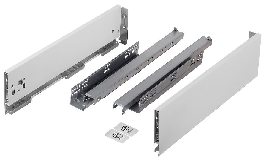 StrongMax = celovýsuv s tlumením a úzkou dutou bočnicí- hloubka 600mm- výška 121mm- nosnost do 40kg- barva bílá- synchronizovaný výsuv, možnost seřízení náklonu celé zásuvky v zadní části (slouží k seřízení náklonu čela)- maximální doporučená šířka zásuvky je 1,6 násobek délky výsuvu ( pro širší zásuvky doporučeno použít podpěru dna viz související produkty)- pro tloušťku dna a zad 18mm - životnost výsuvu minimálně 50 tis. cyklů- doporučené dekory lamina: DTDL 162 PE Šedá grafitováSada obsahuje- bočnice L+P- výsuv L+P- držák zad L+P- držák čela 2x- krytka s logem Strong 2x- vruty pro příchyt čelaPozor dřevěné čelo, dno a záda zásuvky nejsou součástí- rozměry přířezů viz obrázek číslo 2Volitelné komponenty k dokoupení (související produkty) Zásuvka se zvýšenými bočnicemi bez vnitřního dělení = 1x sada relingů, 1x zvýšená bočnice bez perforaceZásuvka se zvýšenými bočnicemi + vnitřní dělení = 1x sada relingů, 1x zvýšená bočnice s perforací, vnitřní dělení zásuvky se zvýšenými bočnicemi dle uváženíZásuvka s relingem pro navýšení zásuvky + vnitřní dělení = 1x reling, vnitřní dělení zásuvky s relingem dle uváženíVnitřní zásuvka = 1x držák čelního profilu, 1x čelní profilVnitřní zásuvka se skleněným čelem = 1x držák skleněného čela, 1x alu profil pro čelo se sklem, 1x čelní skloJednoduchá montáž = Strong označovací šablona, šablona pro montáž čela