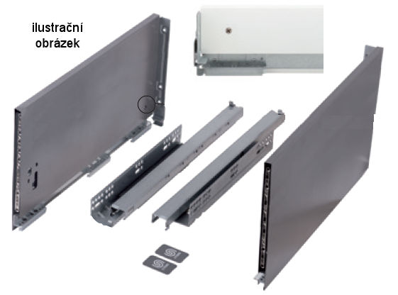 StrongMax = celovýsuv s tlumením a úzkou dutou bočnicí- hloubka 450mm- výška 121mm- nosnost do 40kg- barva bílá- synchronizovaný výsuv, možnost seřízení náklonu celé zásuvky v zadní části (slouží k seřízení náklonu čela)- maximální doporučená šířka zásuvky je 1,6 násobek délky výsuvu ( pro širší zásuvky doporučeno použít podpěru dna viz související produkty)- pro tloušťku dna a zad 16mm - životnost výsuvu minimálně 50 tis. cyklů- doporučené dekory lamina: DTDL 162 PE Šedá grafitováSada obsahuje- bočnice L+P- výsuv L+P- držák zad L+P- držák čela 2x- krytka s logem Strong 2x- vruty pro příchyt čelaPozor dřevěné čelo, dno a záda zásuvky nejsou součástí- rozměry přířezů viz obrázek číslo 2Volitelné komponenty k dokoupení (související produkty) Zásuvka se zvýšenými bočnicemi bez vnitřního dělení = 1x sada relingů, 1x zvýšená bočnice bez perforaceZásuvka se zvýšenými bočnicemi + vnitřní dělení = 1x sada relingů, 1x zvýšená bočnice s perforací, vnitřní dělení zásuvky se zvýšenými bočnicemi dle uváženíZásuvka s relingem pro navýšení zásuvky + vnitřní dělení = 1x reling, vnitřní dělení zásuvky s relingem dle uváženíVnitřní zásuvka = 1x držák čelního profilu, 1x čelní profilJednoduchá montáž = Strong označovací šablona