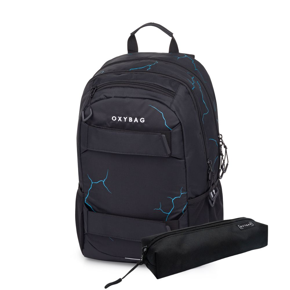 Rozměr: 320*460*160 mm, Hmotnost: 870 gVýhodný set batohu a studentské etue. Batoh: Studentský i volnočasový školní batoh řady OXY SPORT vyniká ergonomicky tvarovanými zády, nastavitelnými polstrovanými ramenními popruhy a hrudním popruhem, díky kterým se pohodlně nosí. Batoh se skládá ze dvou hlavních komor a jedné menší přední kapsičky opatřenými pevnými zipy a praktickými poutky. Uvnitř batohu je vyztužená kapsa na notebook, karabina na klíče, menší kapsa na drobnosti a skrytá kapsa na zádech. Nechybí také boční kapsa na lahev na pití a řada reflexních prvků, díky kterým je batoh lépe viditelný. Batoh je ideální jak pro školáky na druhém stupni tak i pro volnočasové aktivity studentů a dospělých. Délka zádového panelu je 46 cm, objem činí 24 l, hmotnost batohu je 870 g a jeho nosnost je 8 kg. Etue: Studentské pouzdro na psací potřeby s praktickou elastickou gumou, uzavírání na zip.