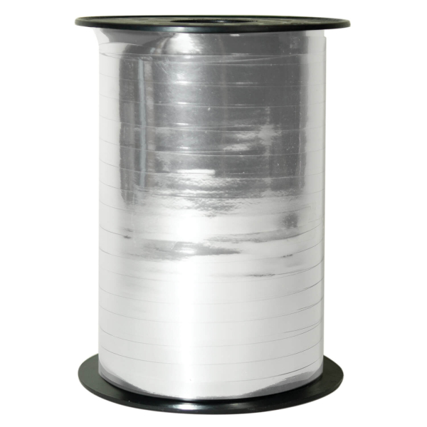 Stuha stříbrná lesklá 230 m x 5 mm Naše barevné stuhy na balónky jsou výjimečné a zářivé - v nabídce najdete širokou škálu barev. Připravte si slavnostní balónkovou dekoraci vyladěnou do posledního detailu a vyberte ten správný barevný odstín stuhy, kterou připevníte létající balónek s heliem na závaží.