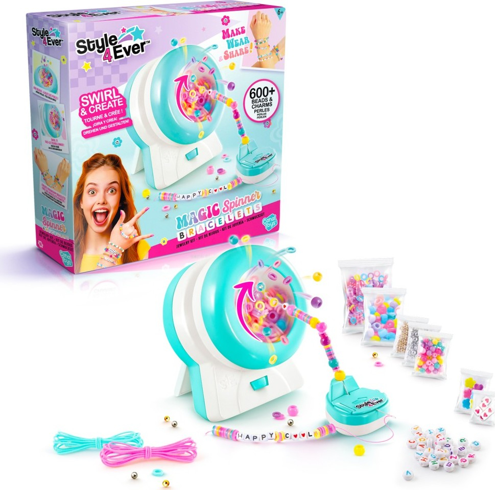 Vyrobte si vlastní náramky pro sebe i kamarády se sadou s navlékačem Style4Ever. V balení naleznete 1 navlékač, USB kabel, 3 šňůrky, 26 korálků písmeny, 90 kulatých korálků, 15 přívěšků, 500 plochách korálků, 30 větších korálků a návod. Zažijte nekonečně zábavy a navlékejte náramky. Navlékač udělá práci za vás. Pro zapnutí navlékače je nutné ho připojit kabelem ke zdroji, baterie nejsou potřeba. Vhodné pro děti od 6ti let.